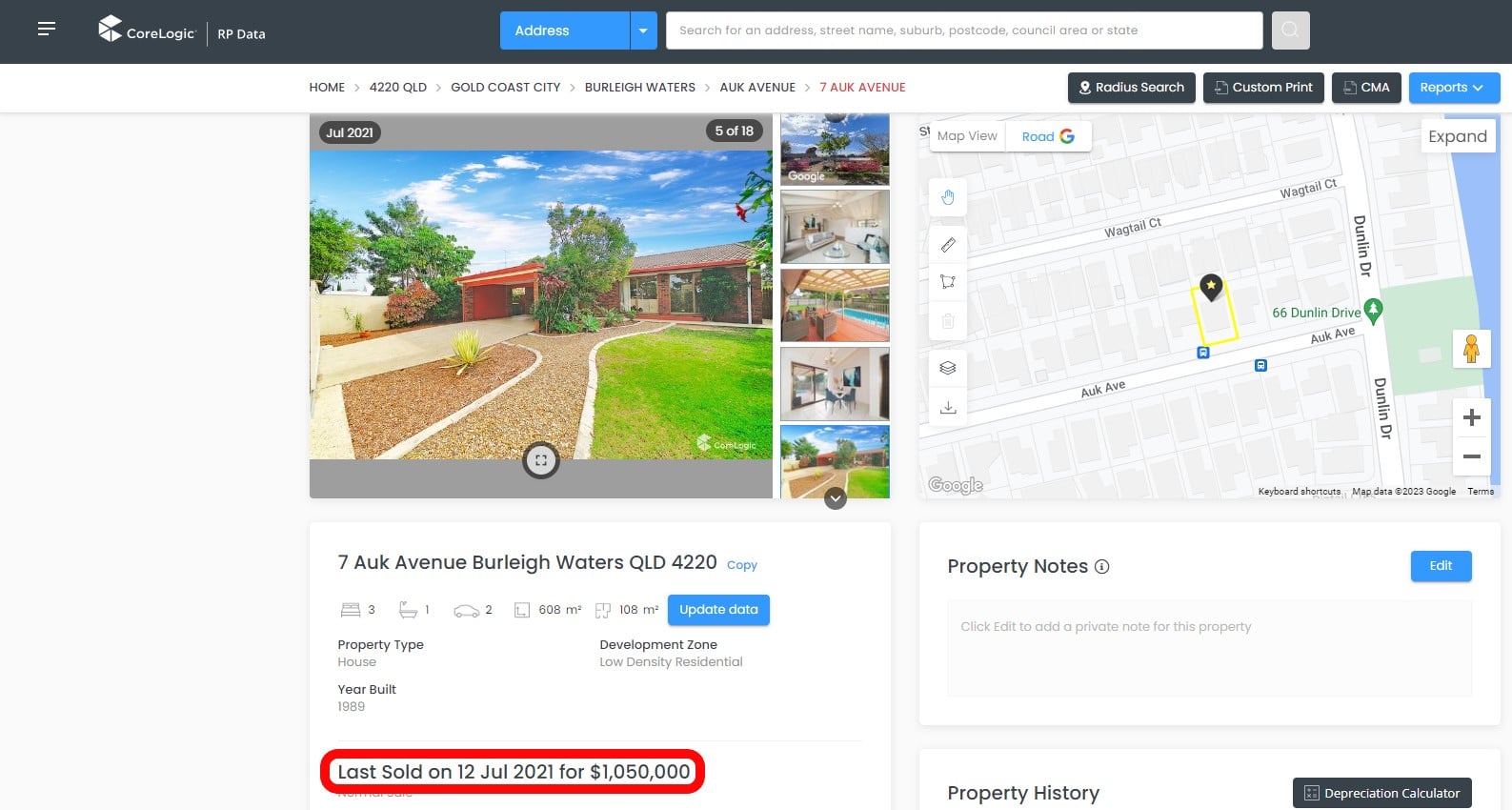 The actual sale price was $1,050,000 as you can see in the Core Logic screenshot below: